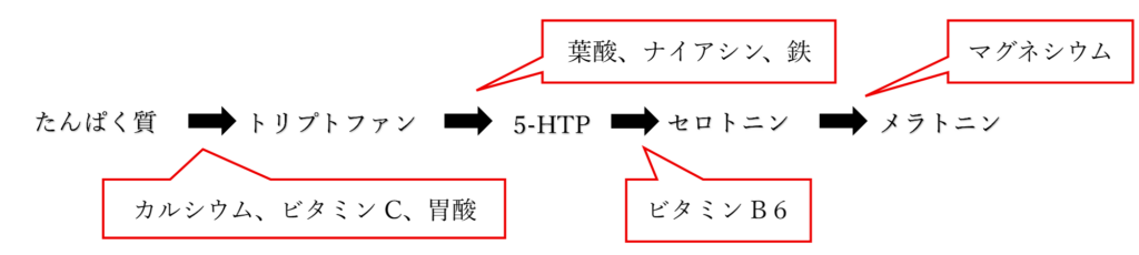 メラトニン合成までには、以下のようなプロセスを踏んでいます。