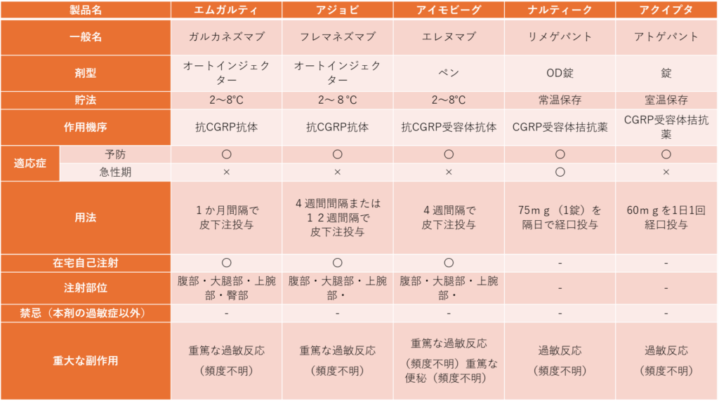 【片頭痛】CGRP関連薬の一覧(2026年3月時点)