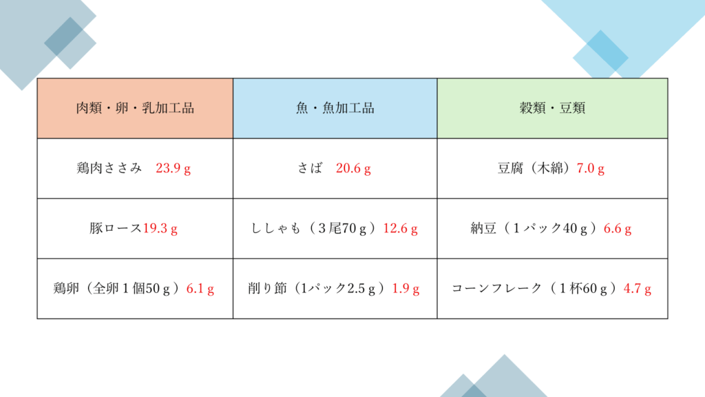 筋肉や臓器、皮膚など身体の主成分として重要な栄養素