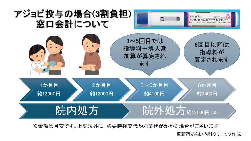 多くの患者さんが悩まれるのが費用面です。使用する製剤によって若干違いはありますが医療保険が3割負担の方の場合、おおよその費用は下記の通りです。(2026年3月現在)